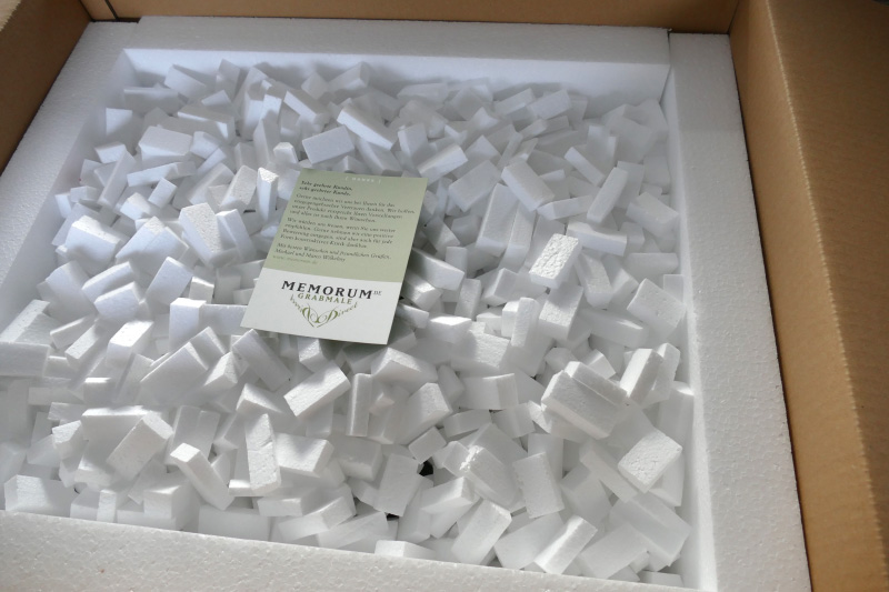 Da wir unsere Verpackungen für den Versand von nur eines Grabsteines optimiert haben, versenden wir eine Bestellung mit mehreren Artikeln auch in mehreren handlichen Paketen. Haben Sie dafür bitte Verständnis – Transportsicherheit und besseres Handling sind sicher zwei gute Gründe für diesen Weg.